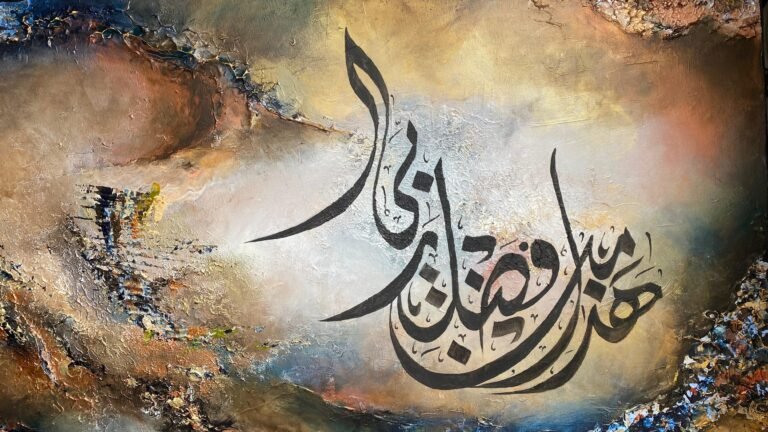 Arabic calligraphy of the verse:: ” Haza men fadel Rabi”