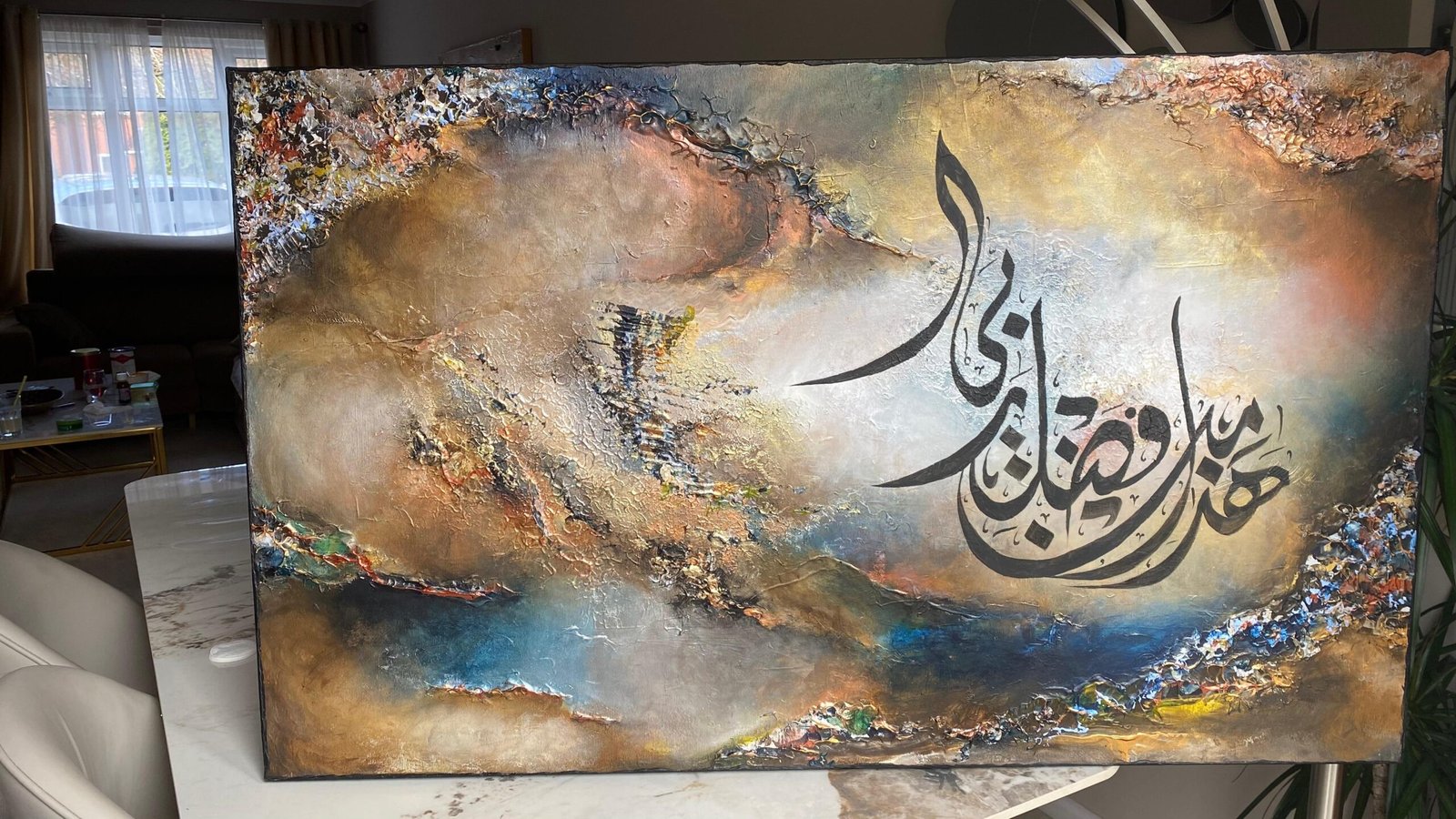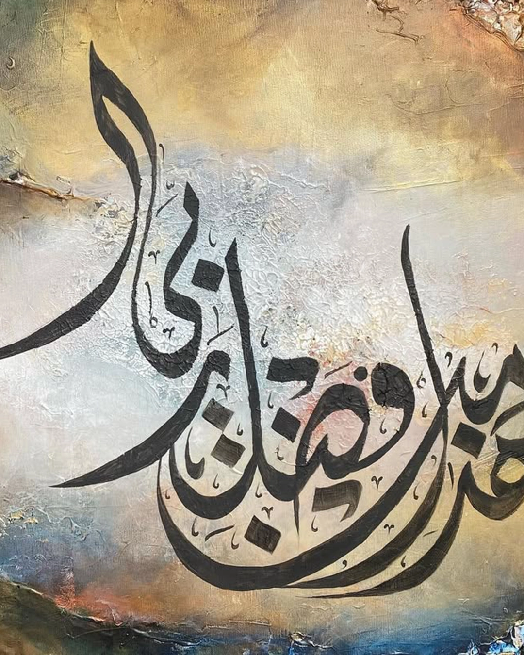 Arabic calligraphy of the verse:: ” Haza men fadel Rabi”